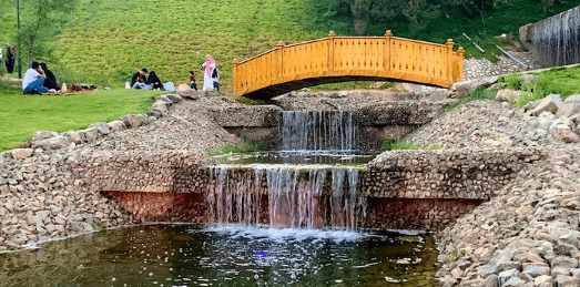 - يحتوي المنتزه على 2 شلال مياه، ويصل ارتفاع الشلال الواحد إلى 10 أمتار.